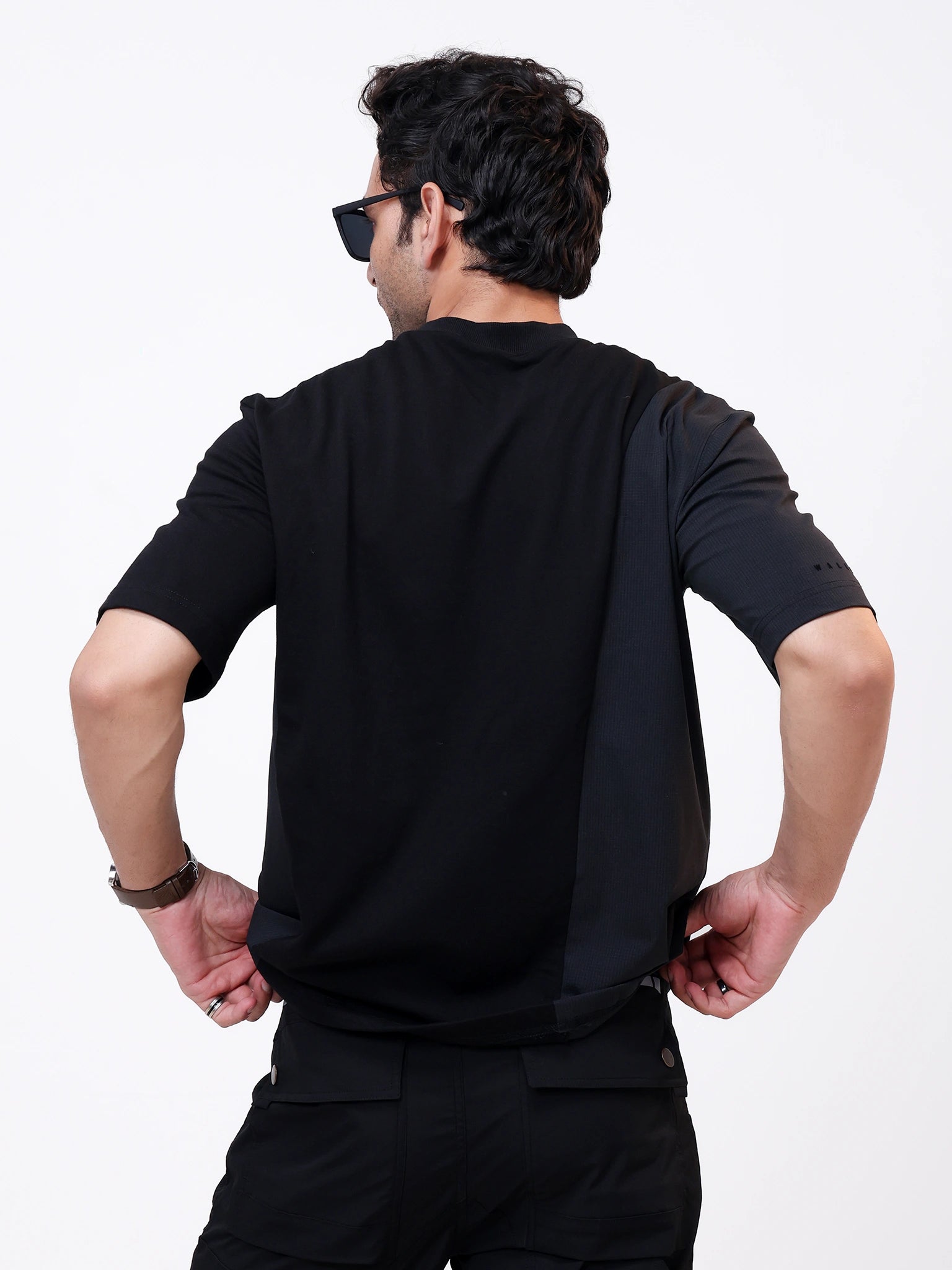 Black-on-black design with minimal detailing for a modern, elevated look.